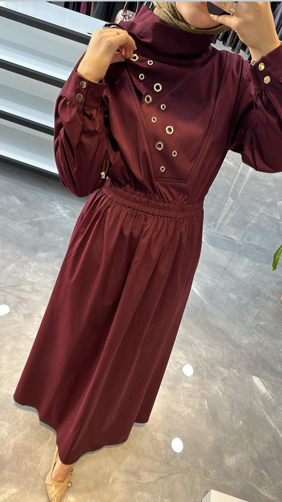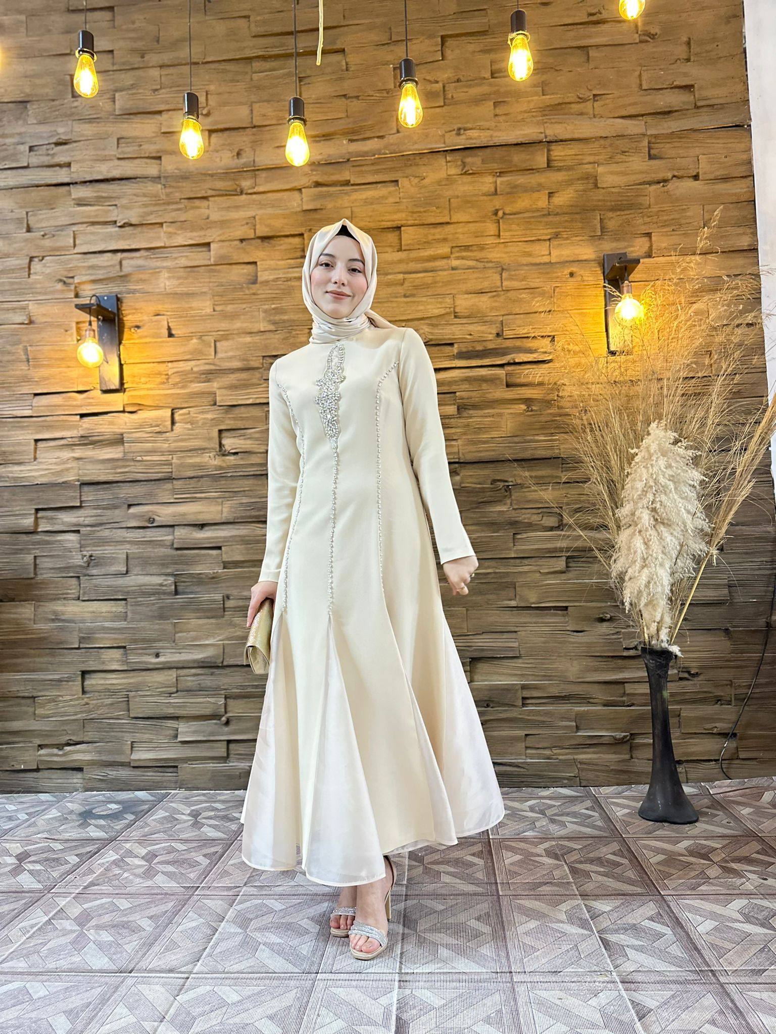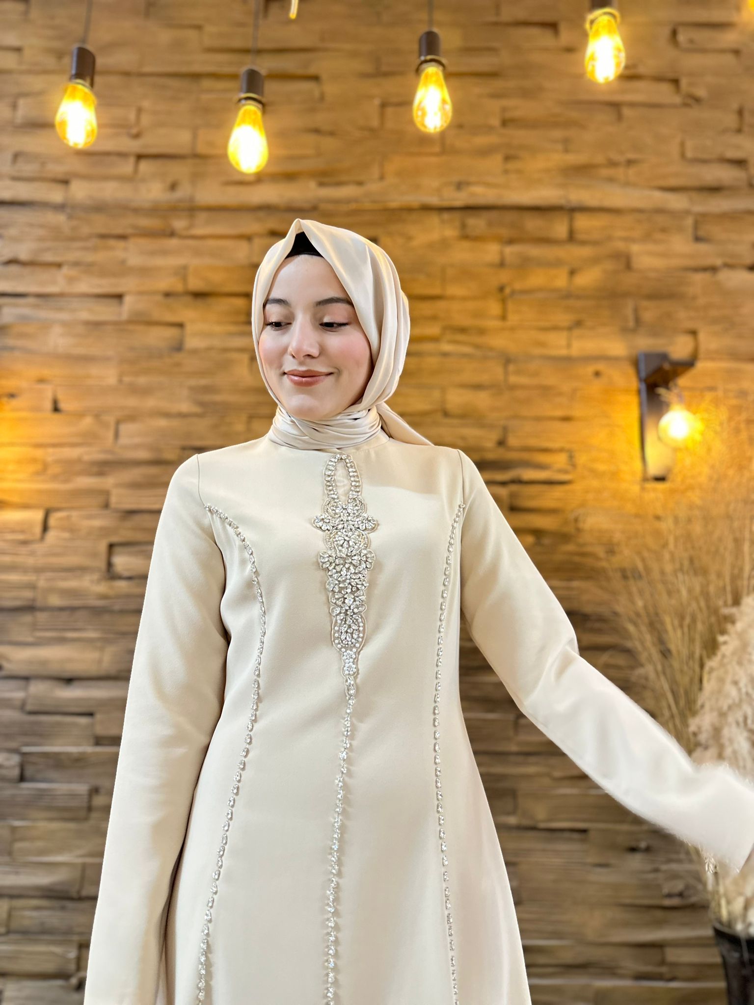 TAFTA ETEK DETAY TAŞ İŞLEME ELBİSE BEJ