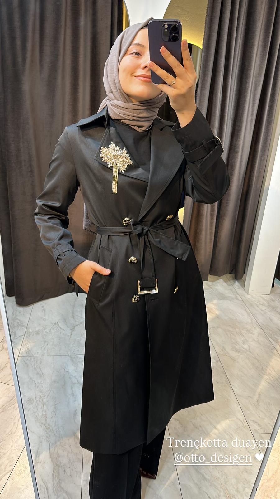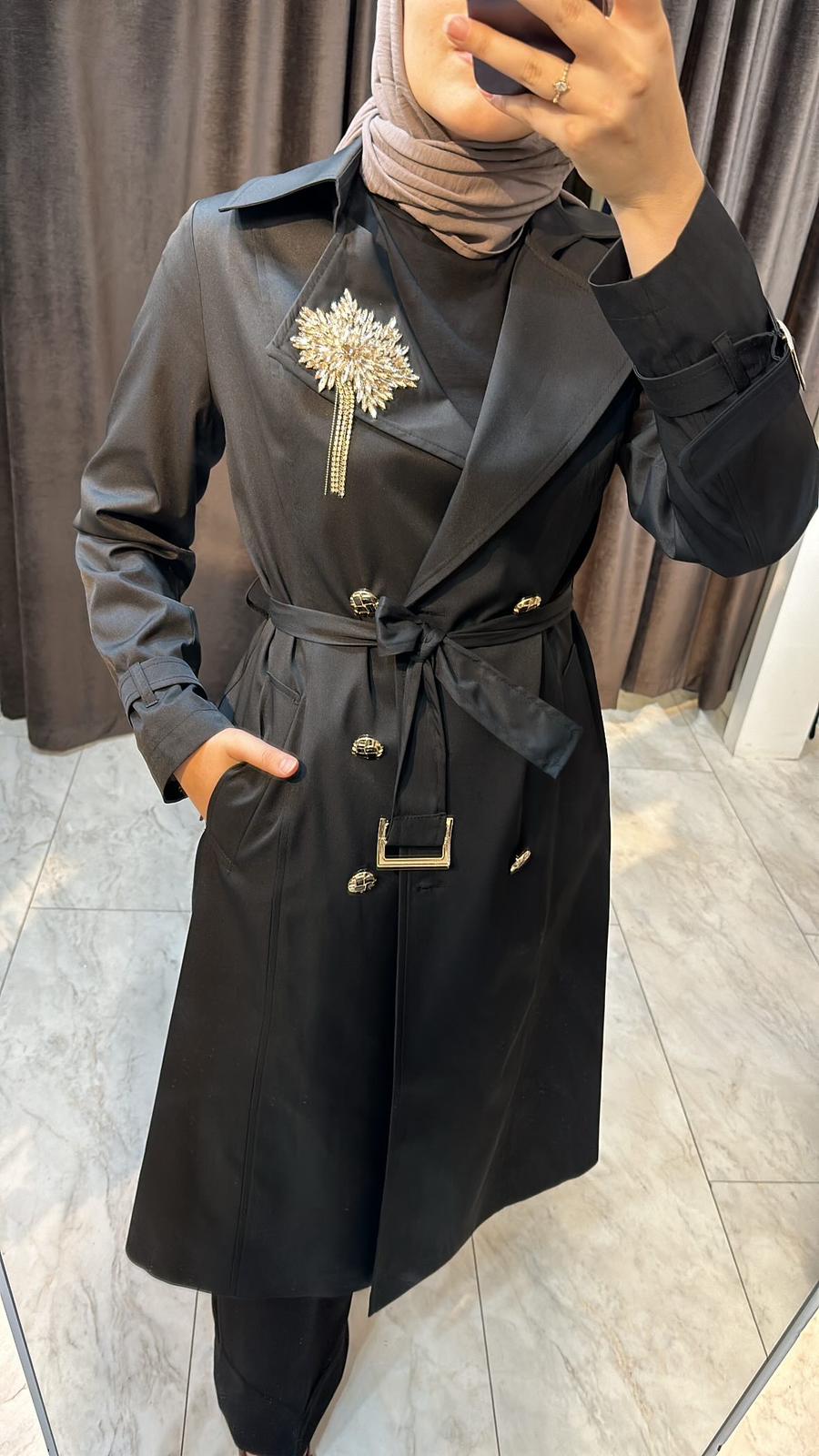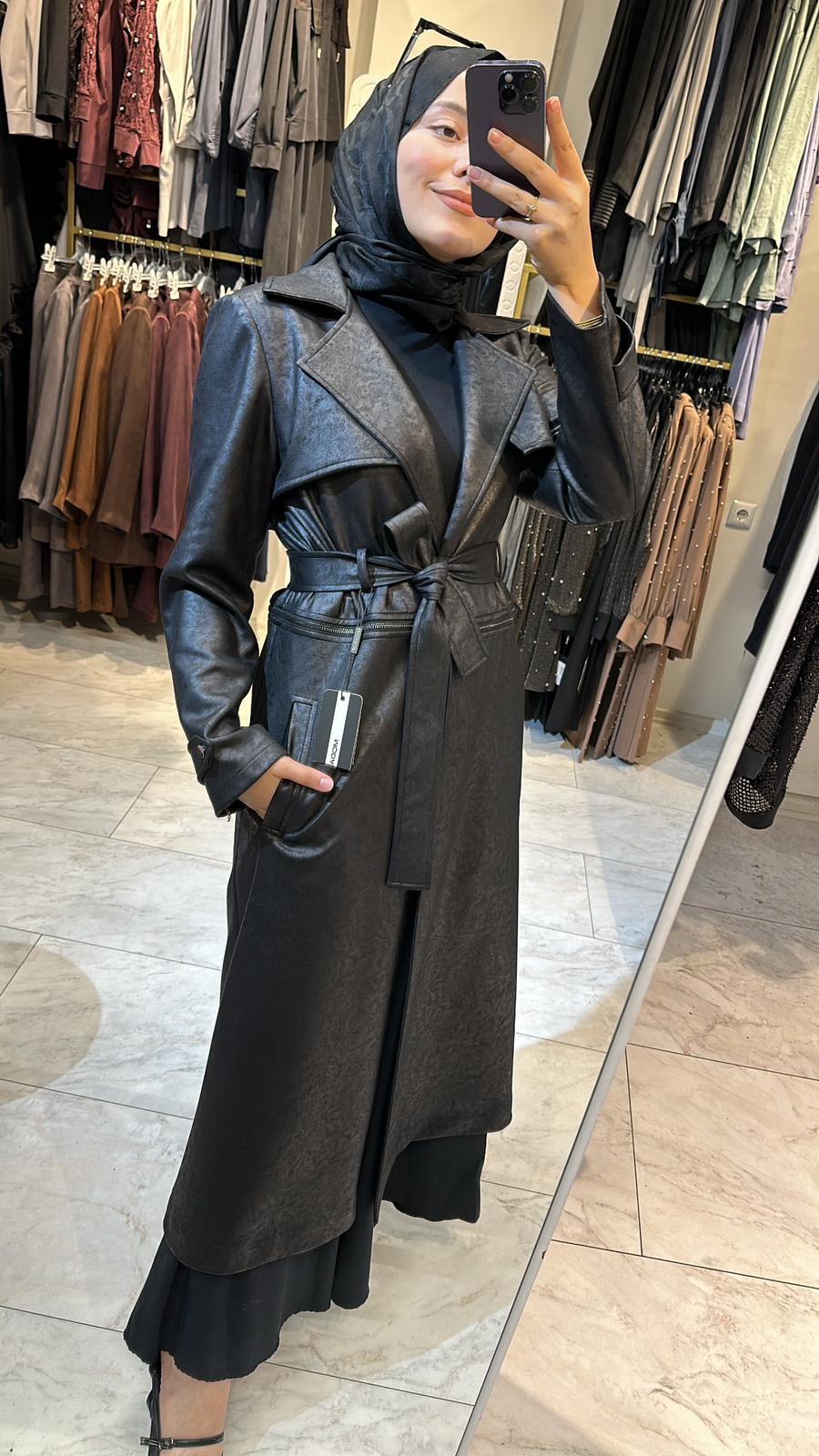 Kruvaze Kaplamalı Deri Midi Trençkot
