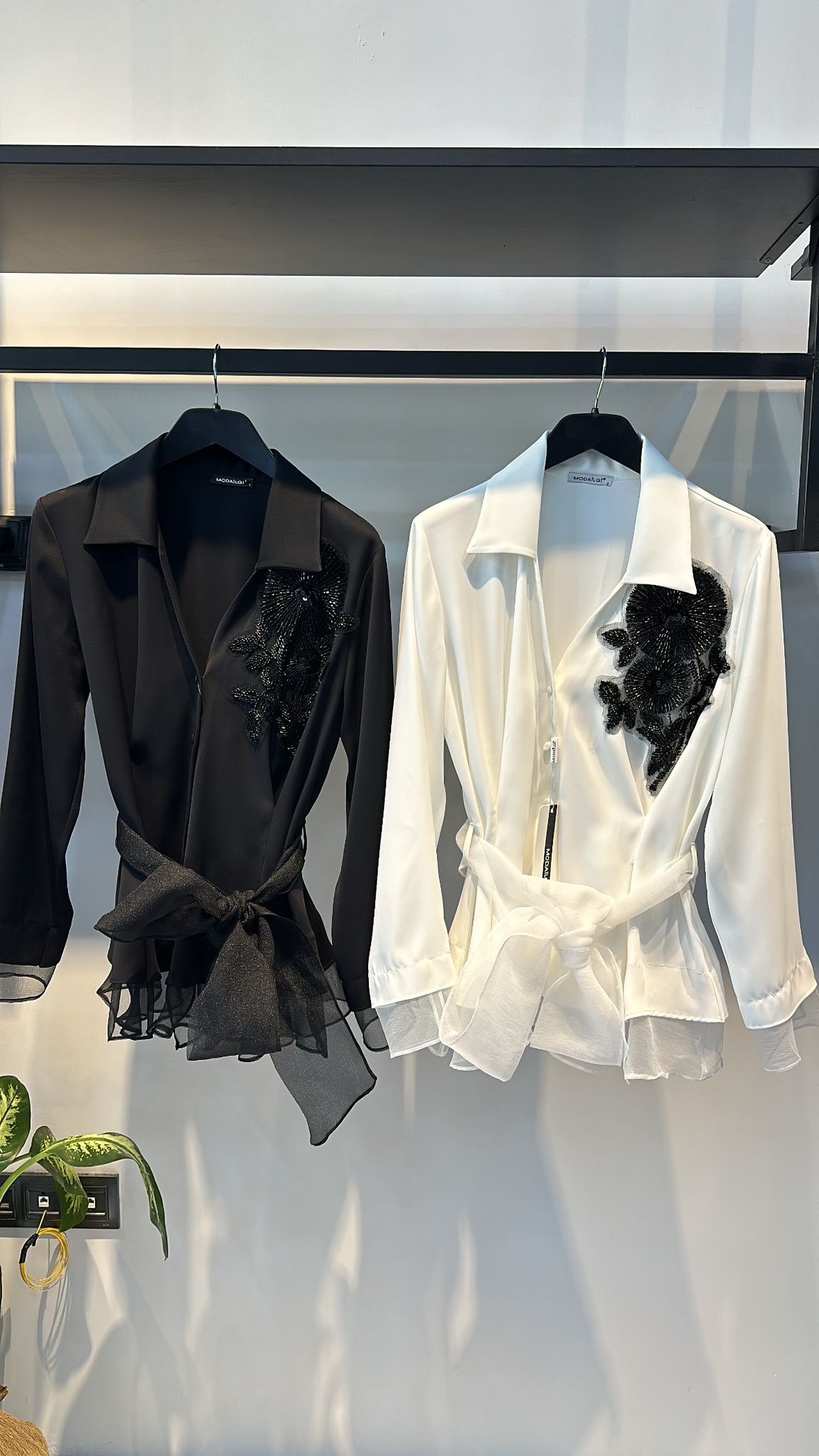 MODAİLGİ BONCUK İŞLEMELİ ORGANZE DETAY GÖMLEK