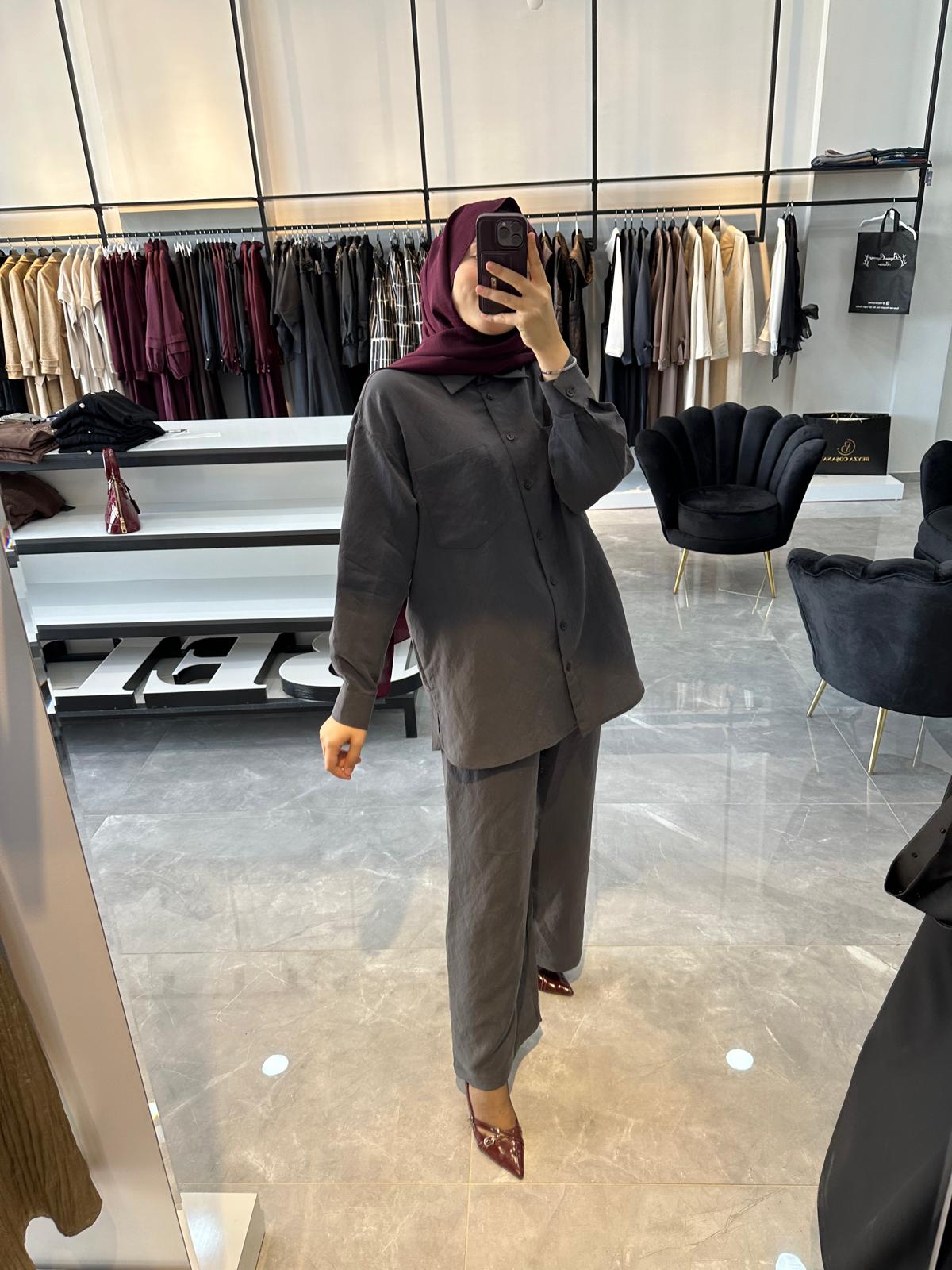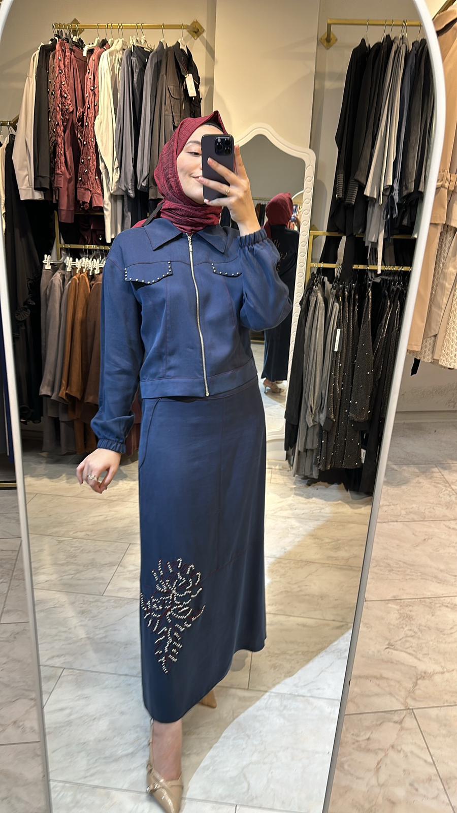 TAŞ İŞLEME TASARIM KUPRA PANTOLONLU TAKIM